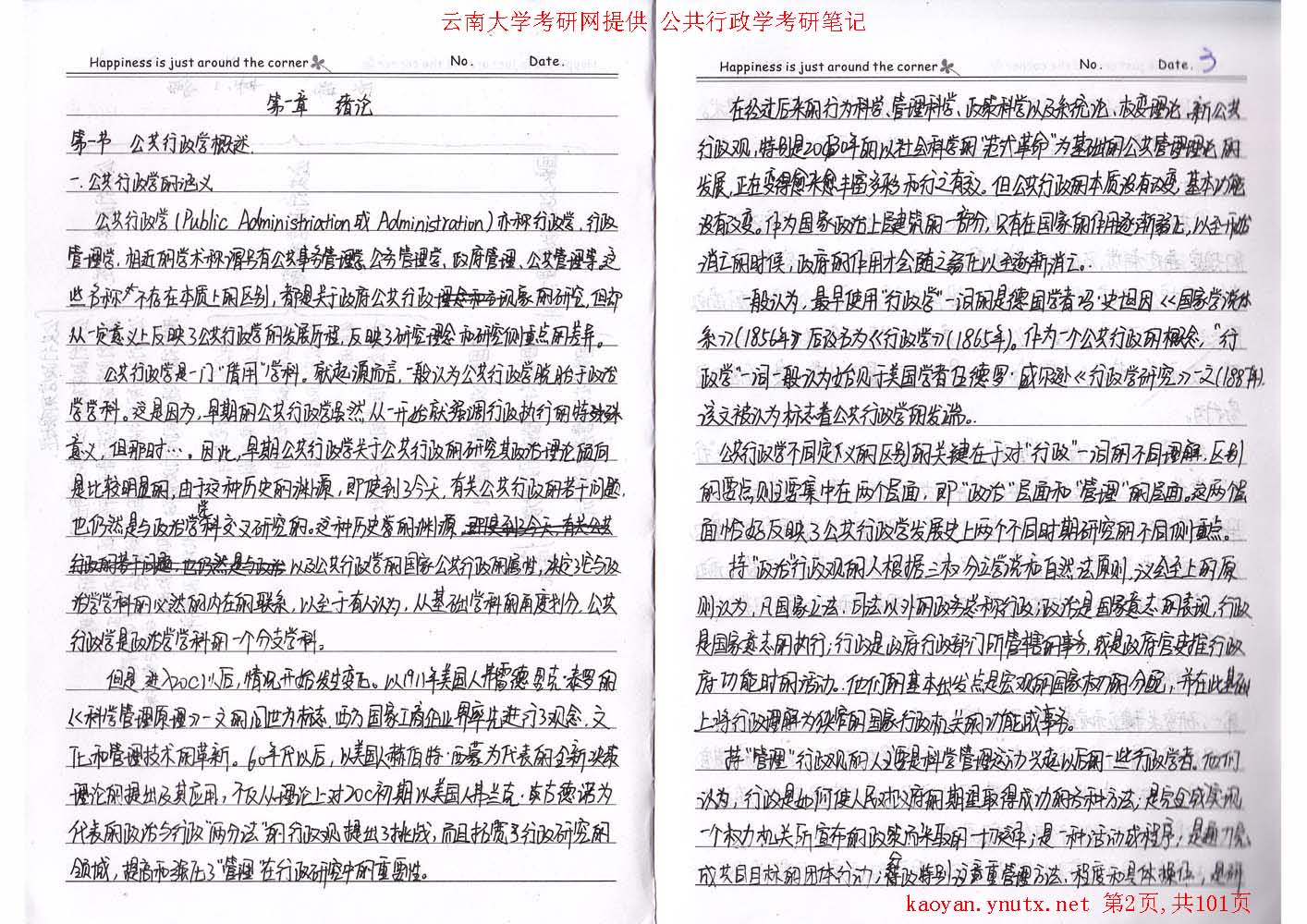 云南大学考行政管理学&公共经济学研笔记,笔记包括3部份,笔记内容为手写
